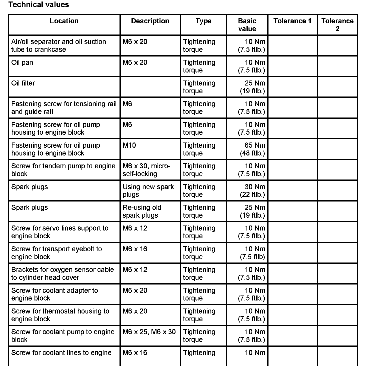 Tightening torque 10 Nm (7.5 ftlb.)