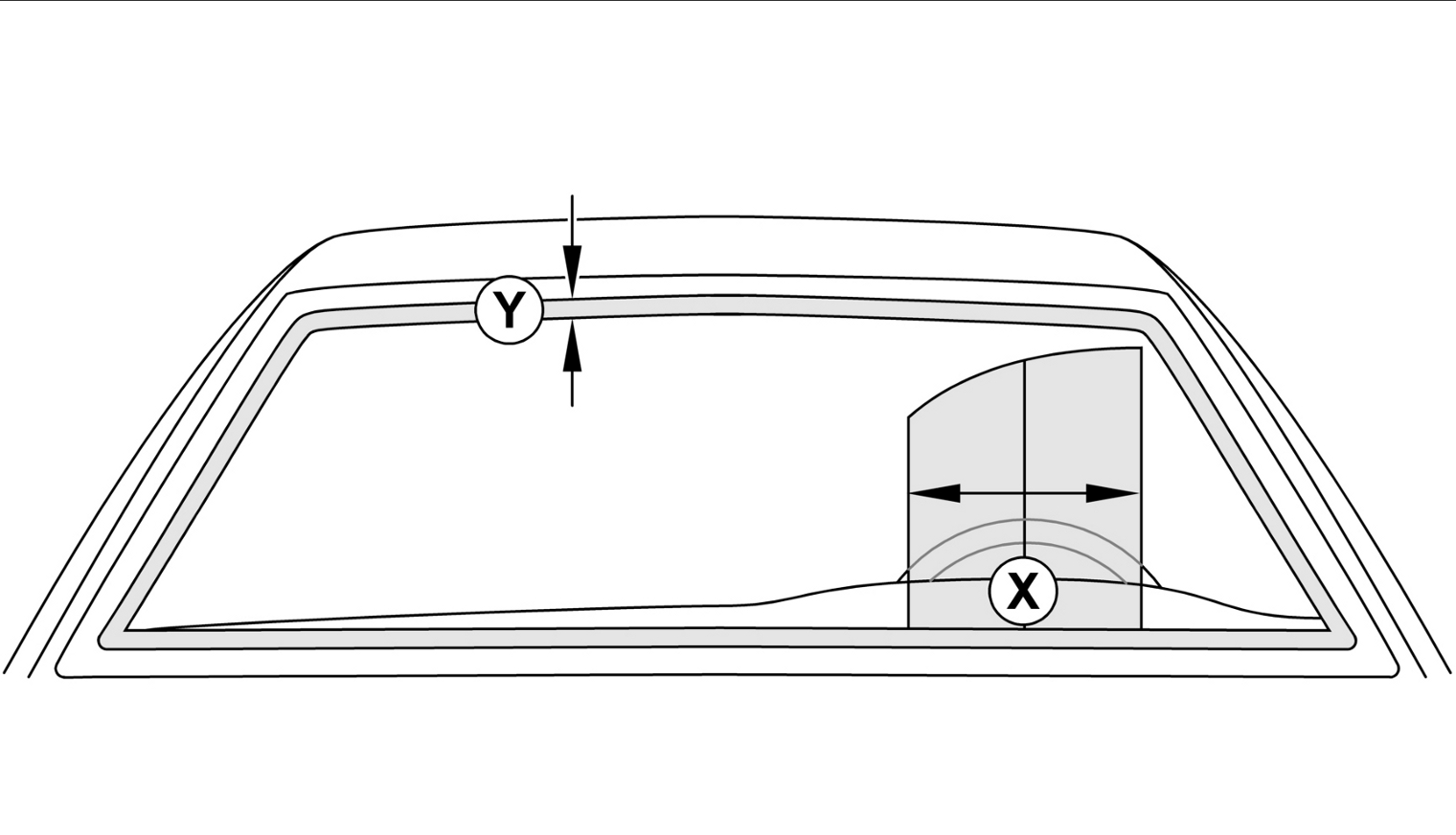 - Damage in the driver's field of vision (30 cm wide in the wiper area -X- ) and at the edge of the windscreen (10 cm -Y- ) must not be repaired. => Driver's field of vision