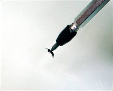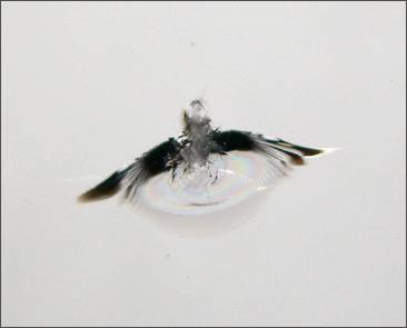 1.2. Remove loose splinters of glass out of the chipped area using the hard metal stylus, but do not enlarge the impact crater unnecessarily. => Exposing stone chip