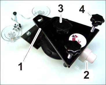 4.3. Stick bridge firmly onto windscreen by operating the vacuum pump until the red mark -2- is no longer visible.