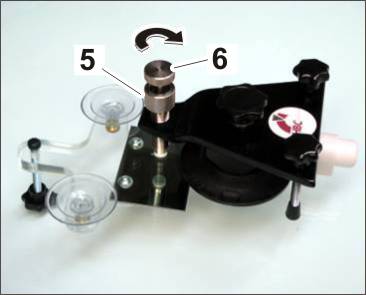 1.1. Screw injector with seal -5- into the bridge until the seal is touching the glass. Then press the injector against the window by completing one more turn.