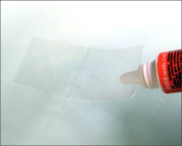 7.1. Place a UV lamp over the area of damage from the outside and switch on. => Curing under a UV lamp