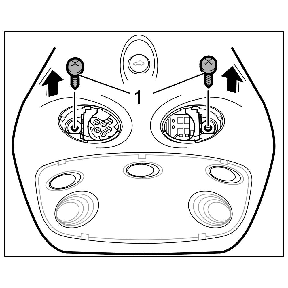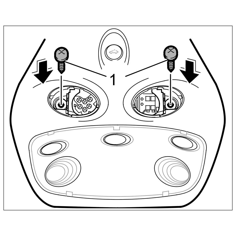 1. Unclip the two covers on the roof console and unscrew both fastening screws -1-.