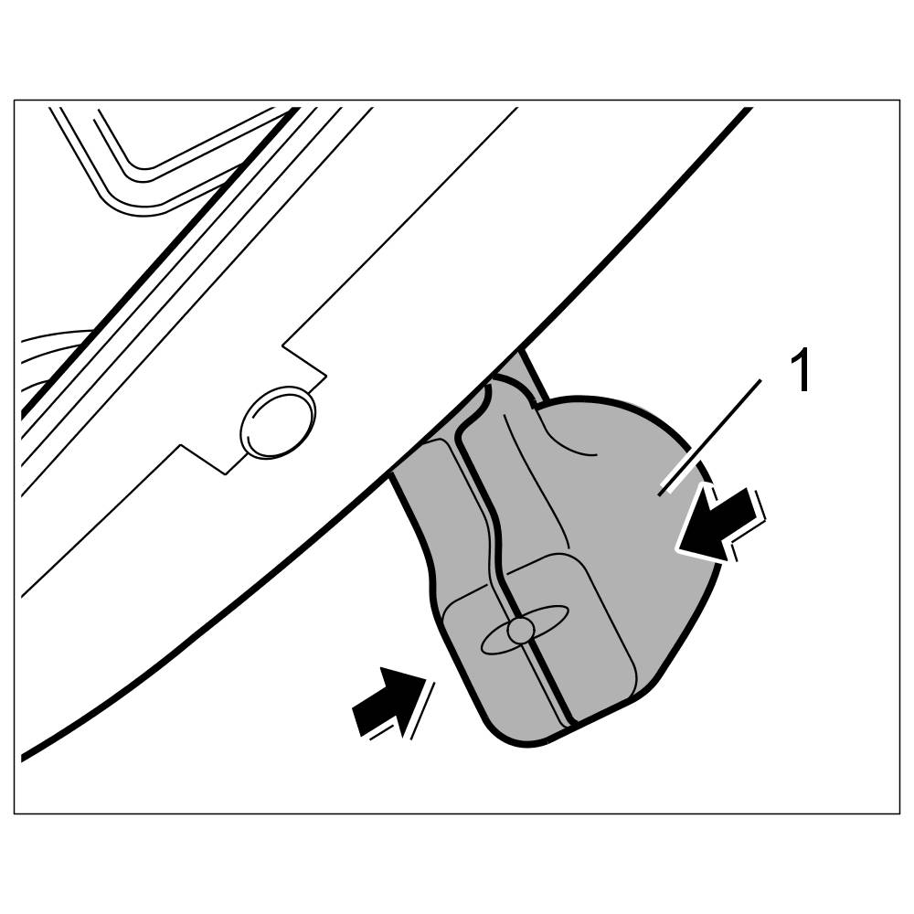 8. Engage holder -2- for the electric line and push line in behind the roof liner.