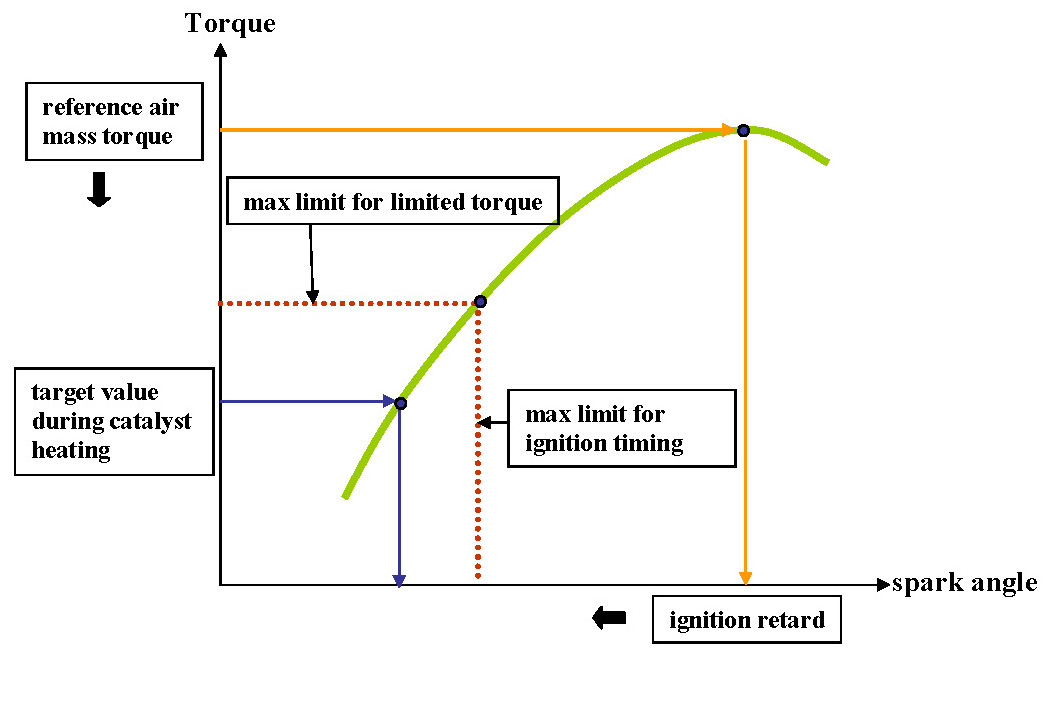 The spark retard is limited (fixed) during the catalyst heating phase.