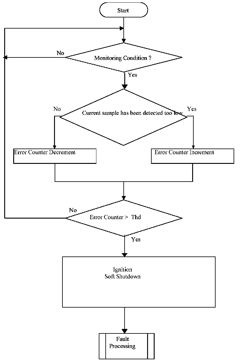 The diagnosis is made by an analogue acquisition of current feedback of the coil. If this current feedback is below than a calibratable threshold, soft shutdown is detected.