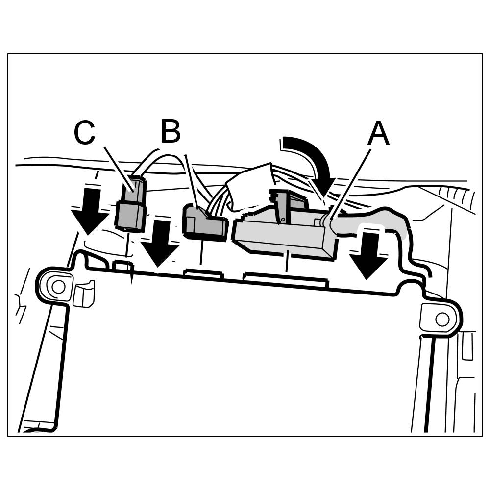 2. Push in electric plug connections -C, B- until plugs are felt to engage.