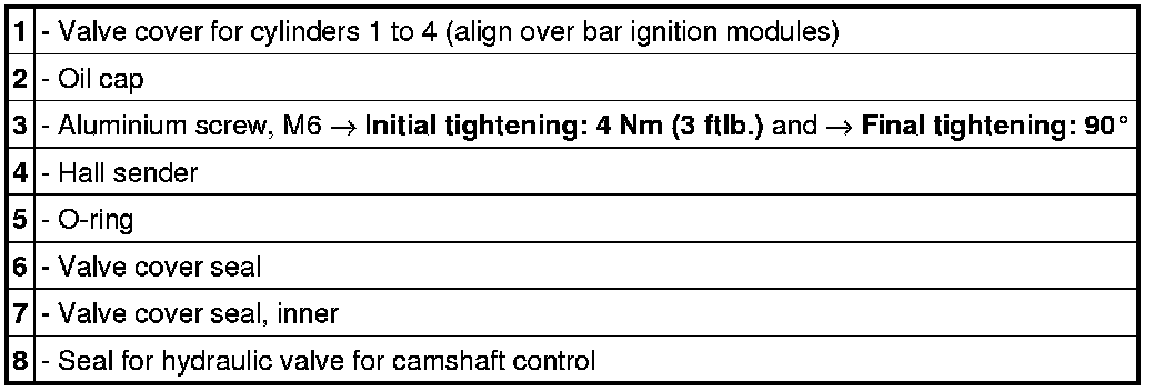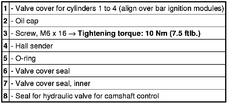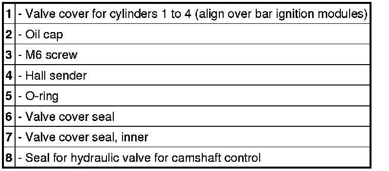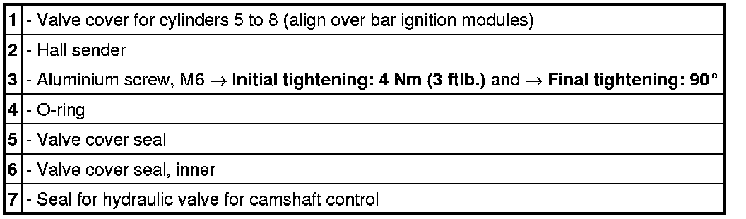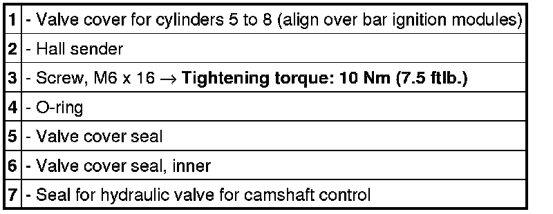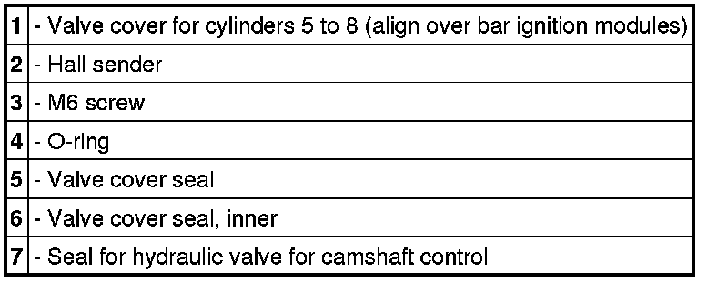 Always read the information concerning modified tightening specifications and component changes relating to repairs provided for specific engine numbers in the Information section -> 1001IN IMPORTANT component changes for V8 engines as of October 2008