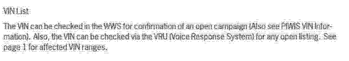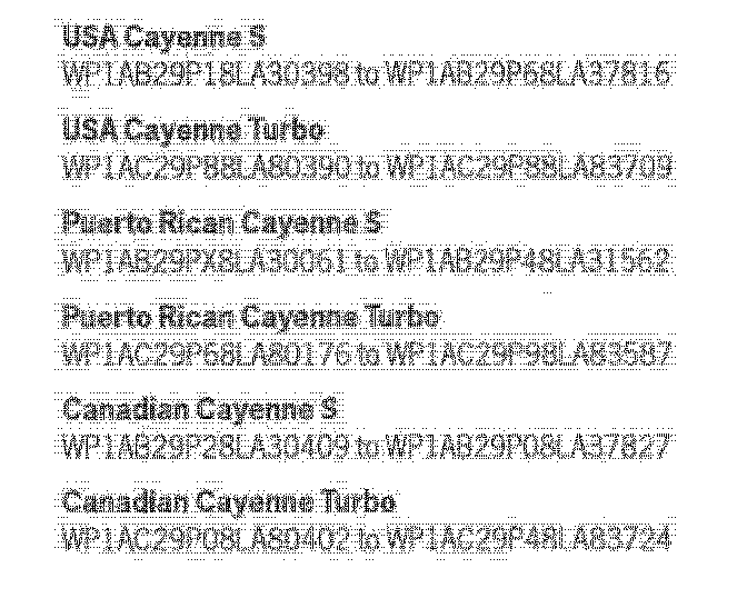 A total of 3072 U.S., Puerto Rican and Canadian vehicles fall within the scope of this Workshop Campaign. Very Important! Use the VIN range as a general guideline. The VIN can be checked in the WWS for confirmation of an open workshop campaign (Also see PIWIS VIN Information). Refer to Attachment "B" to determine if a particular vehicle is eligible for this workshop campaign. Also, the VIN can be checked via the VRU (Voice Response System) for any open listing.
