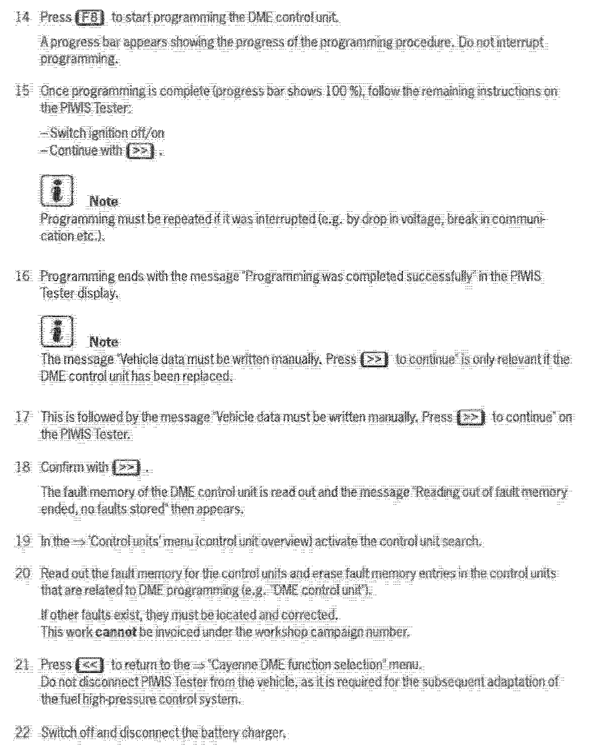 To remedy this situation, re-program the DME control unit using the PIWIS Tester with installed test software version 19.010/09/2007 (or higher).