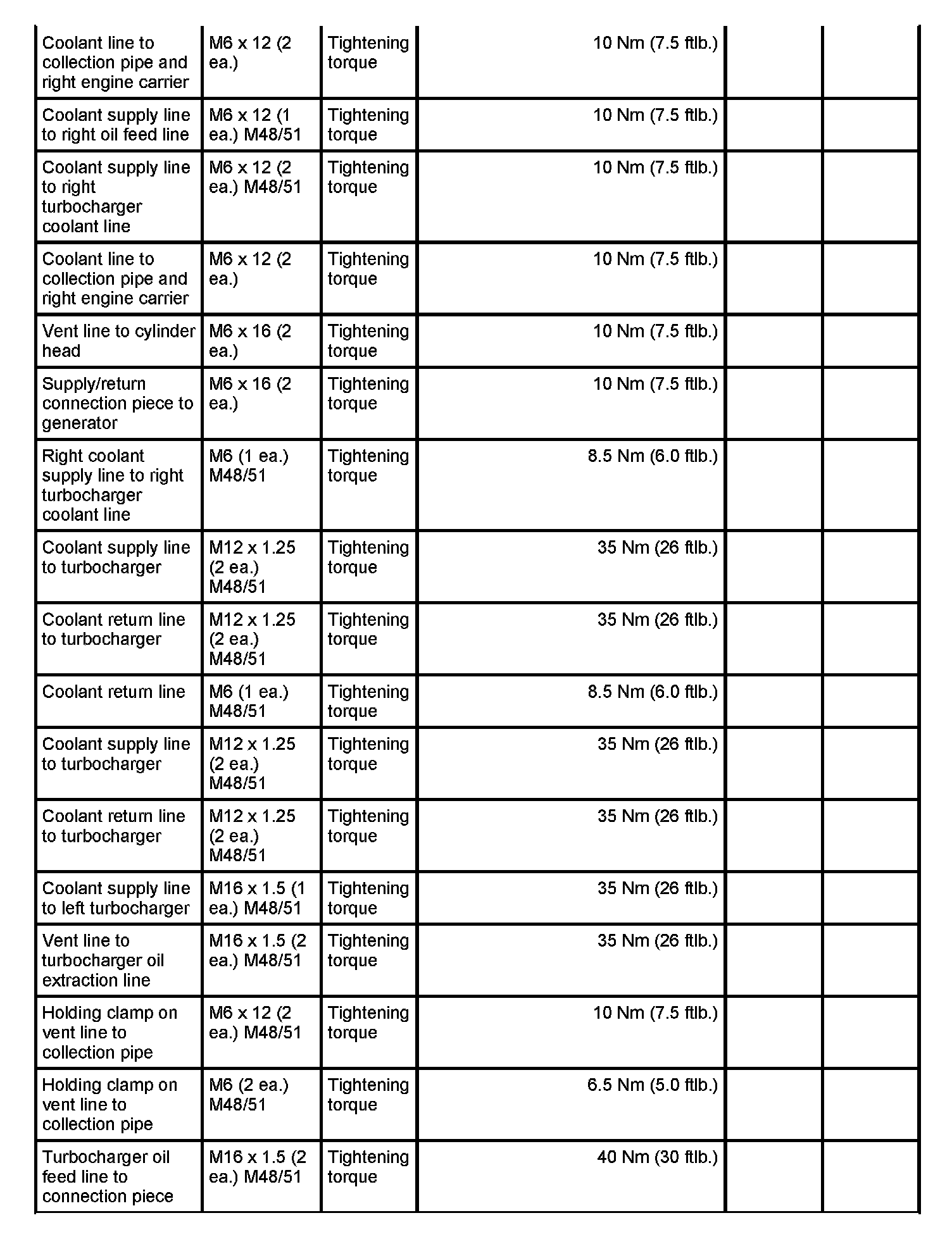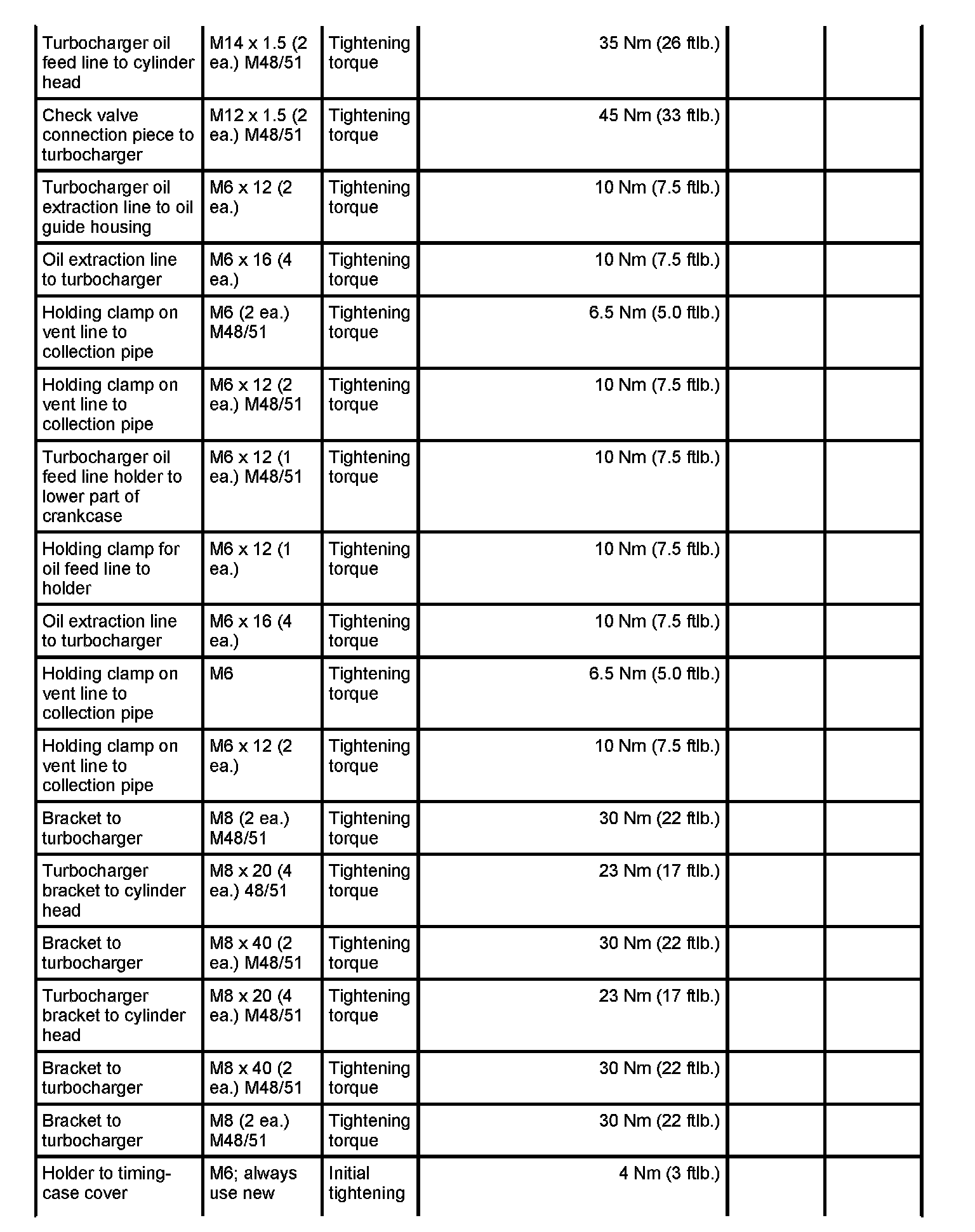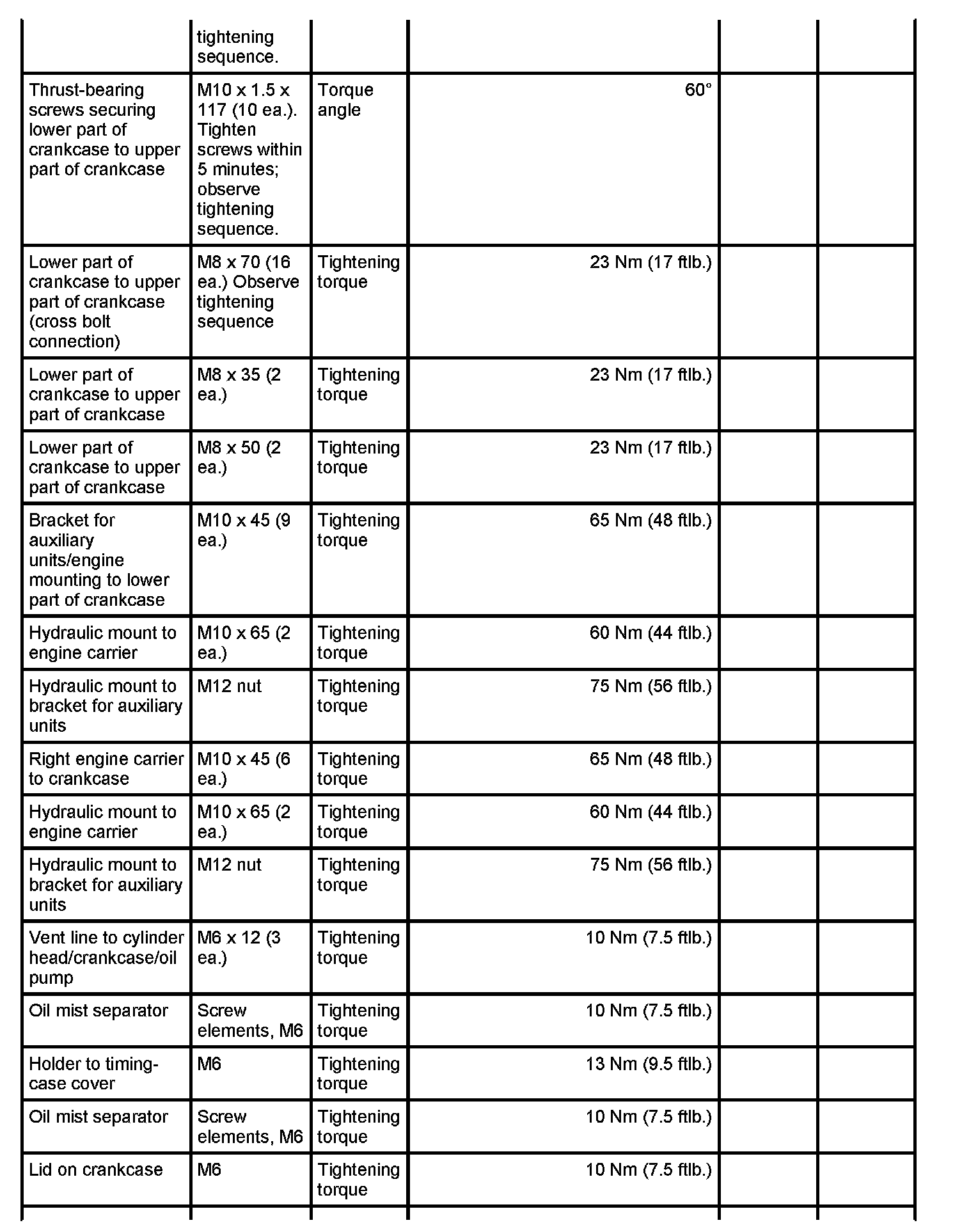 6 - Thrust-bearing screw M10; tighten screws within 5 minutes; observe tightening sequence. - Initial tightening: 22 Nm (16 ftlb.) - Torque angle: 60 degrees