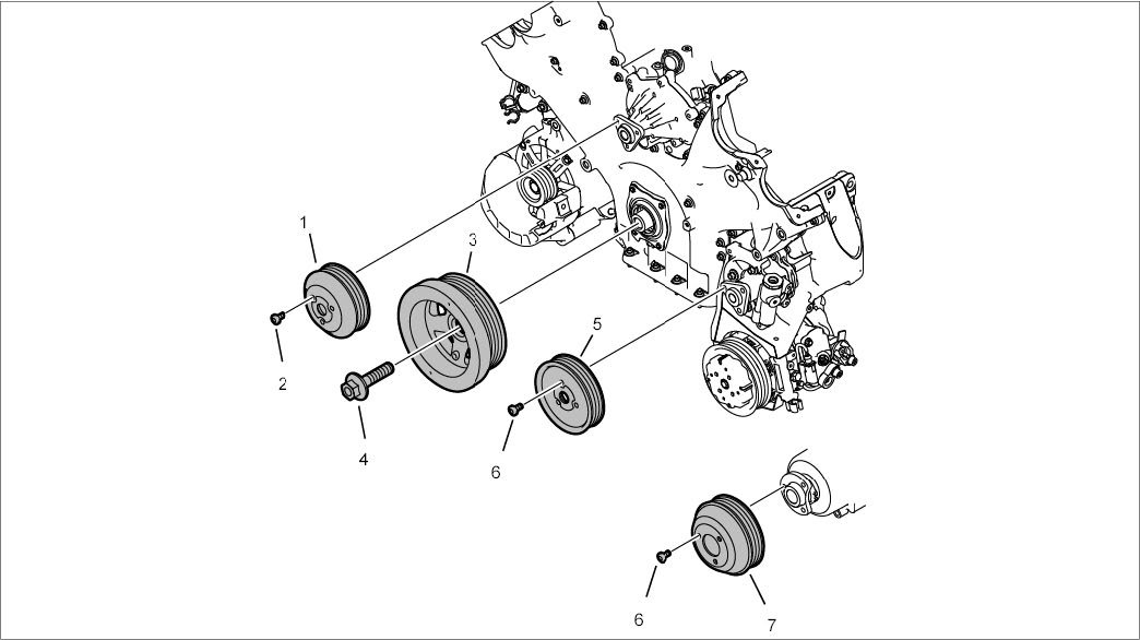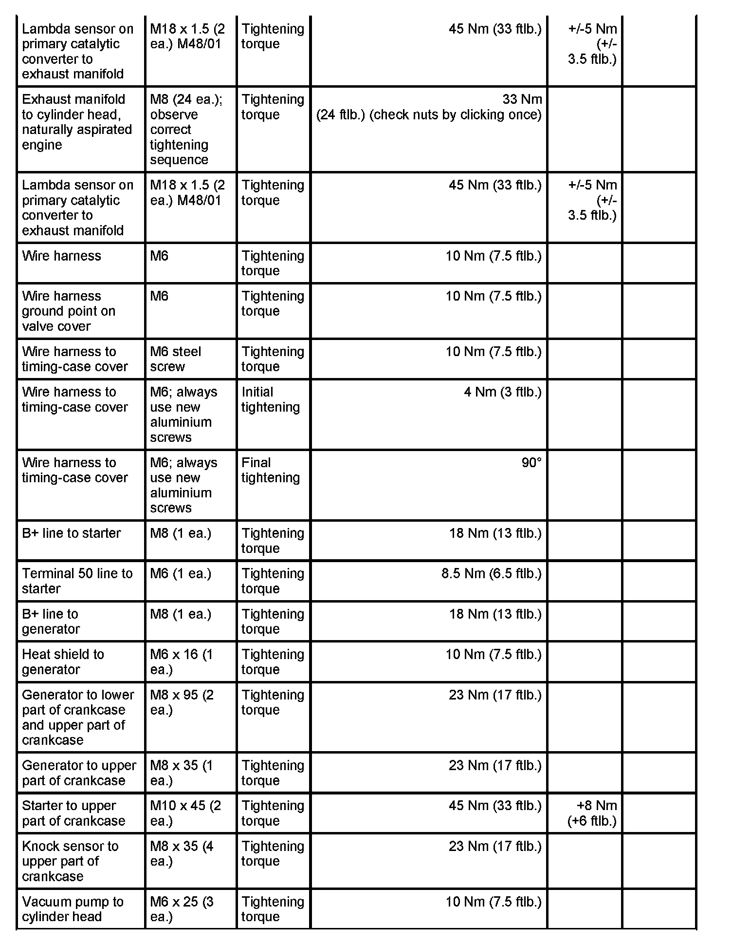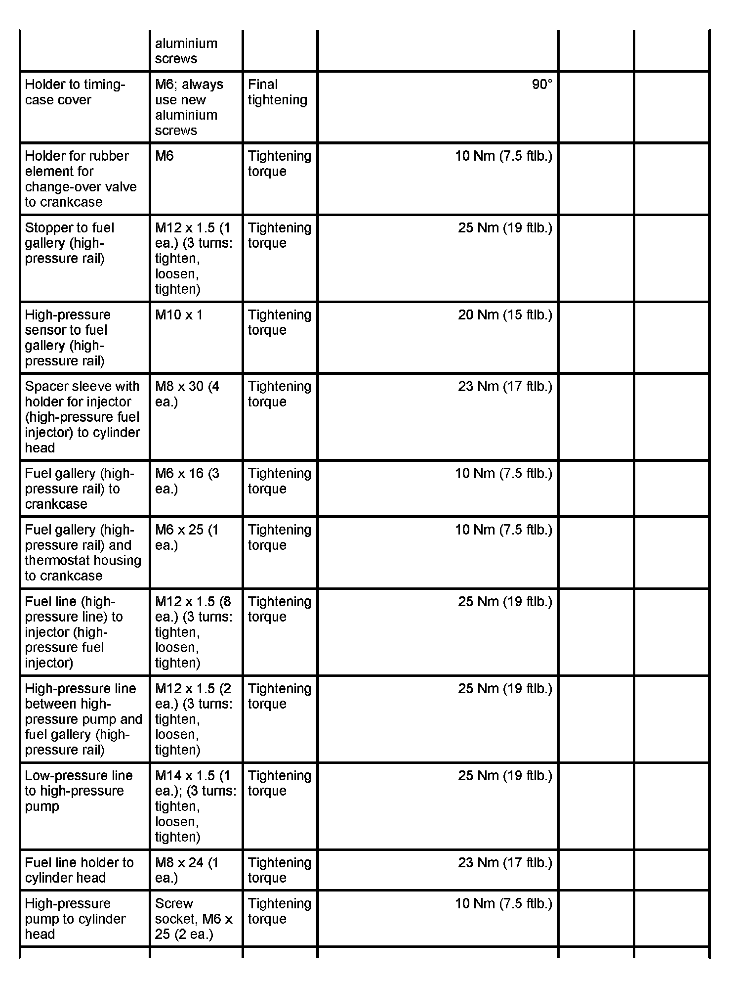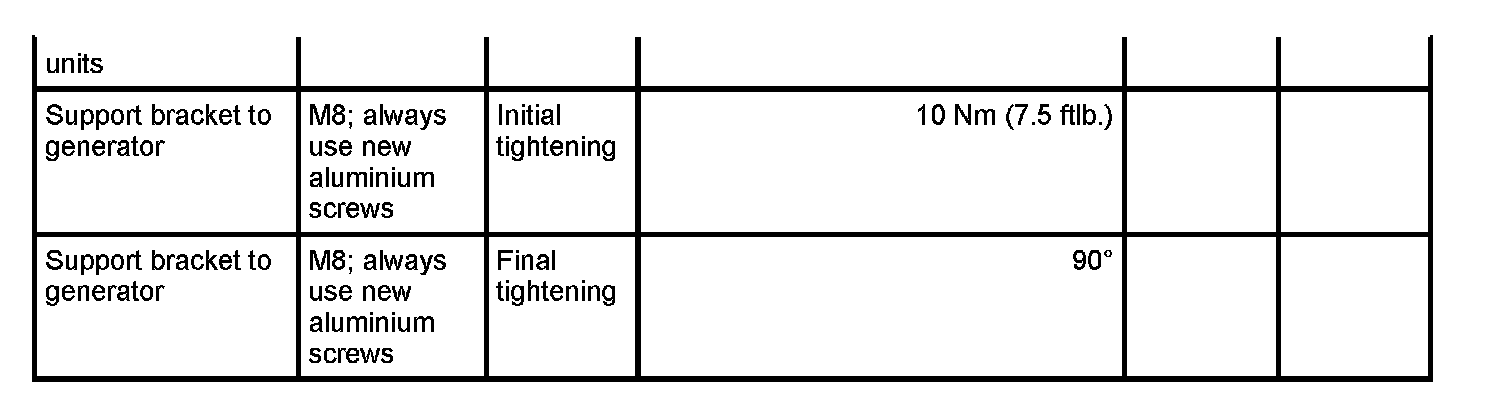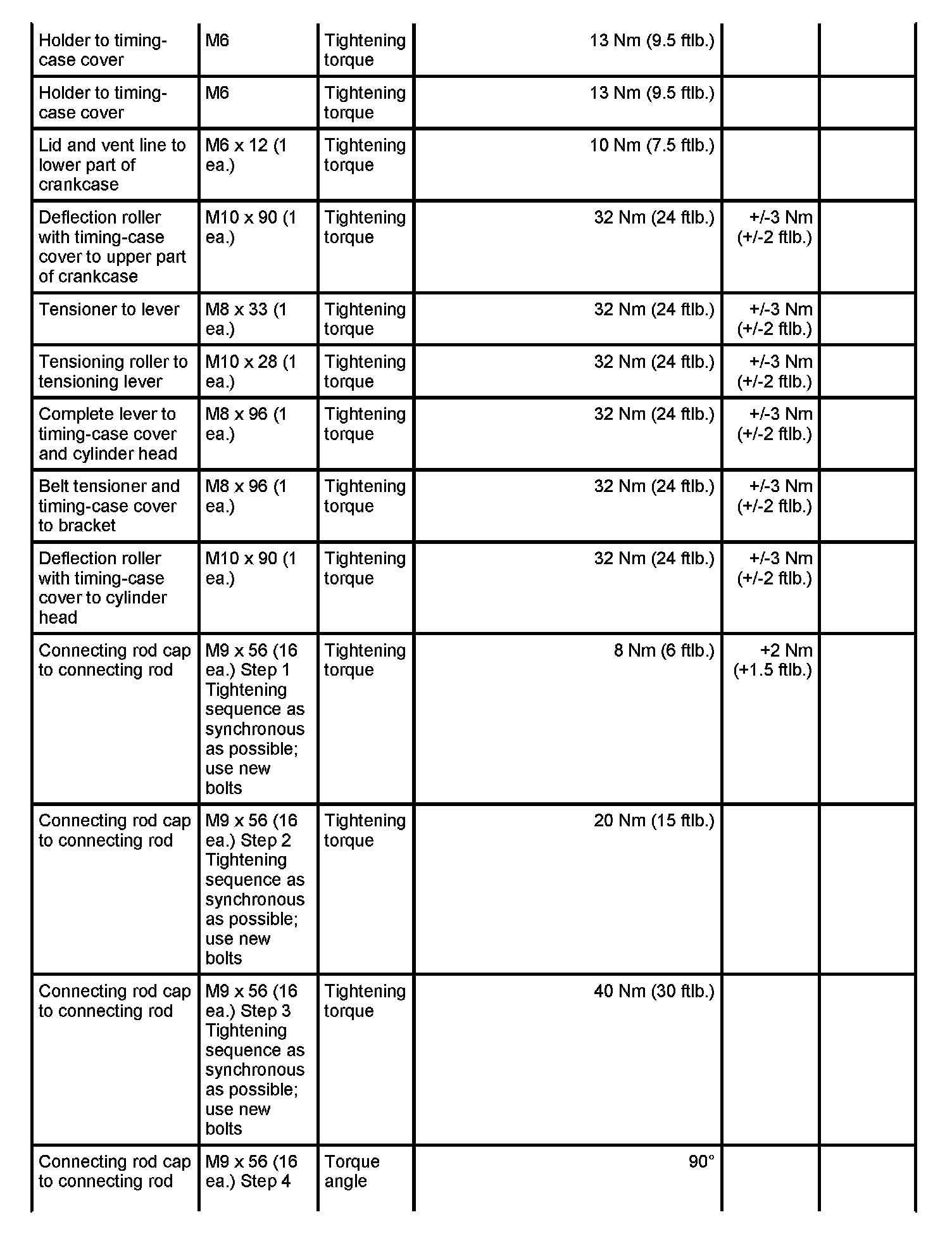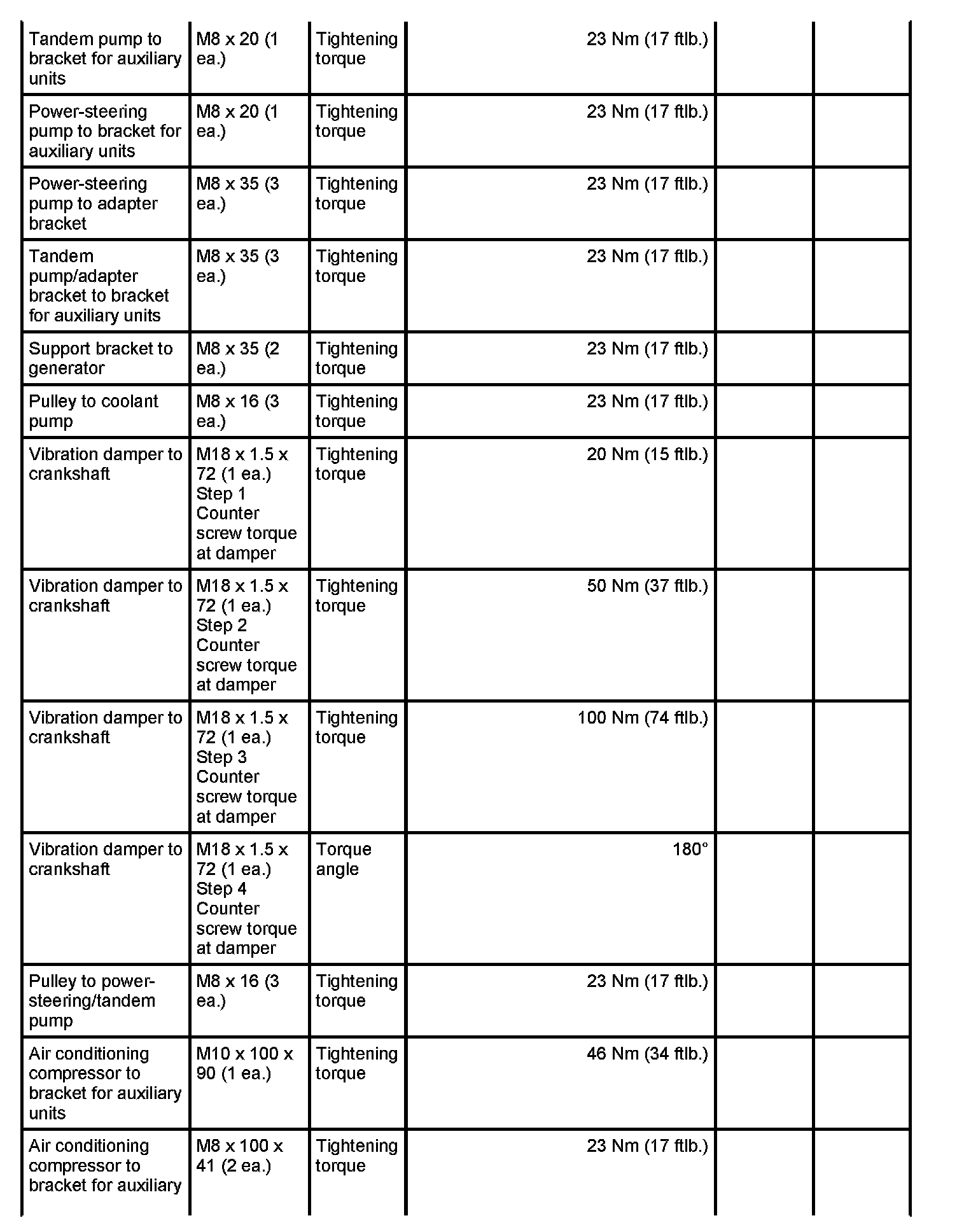 3 - Screw, M8 x 96; complete lever to timing-case cover and cylinder head - Tightening torque: 32 Nm (24 ftlb.)±3 Nm (±2 ftlb.) belt tensioner and timing-case cover to bracket - Tightening torque: 32 Nm (24 ftlb.)±3 Nm (±2 ftlb.)