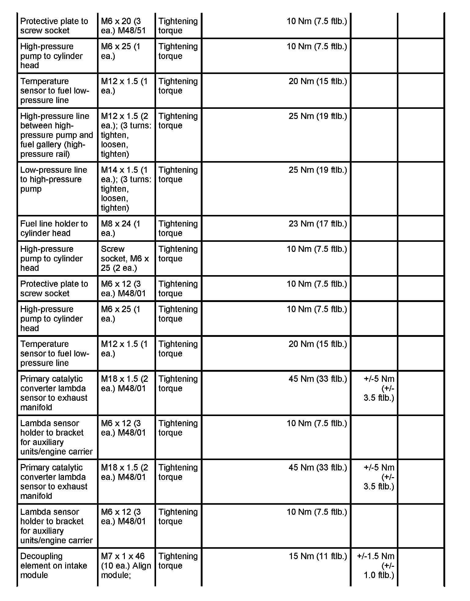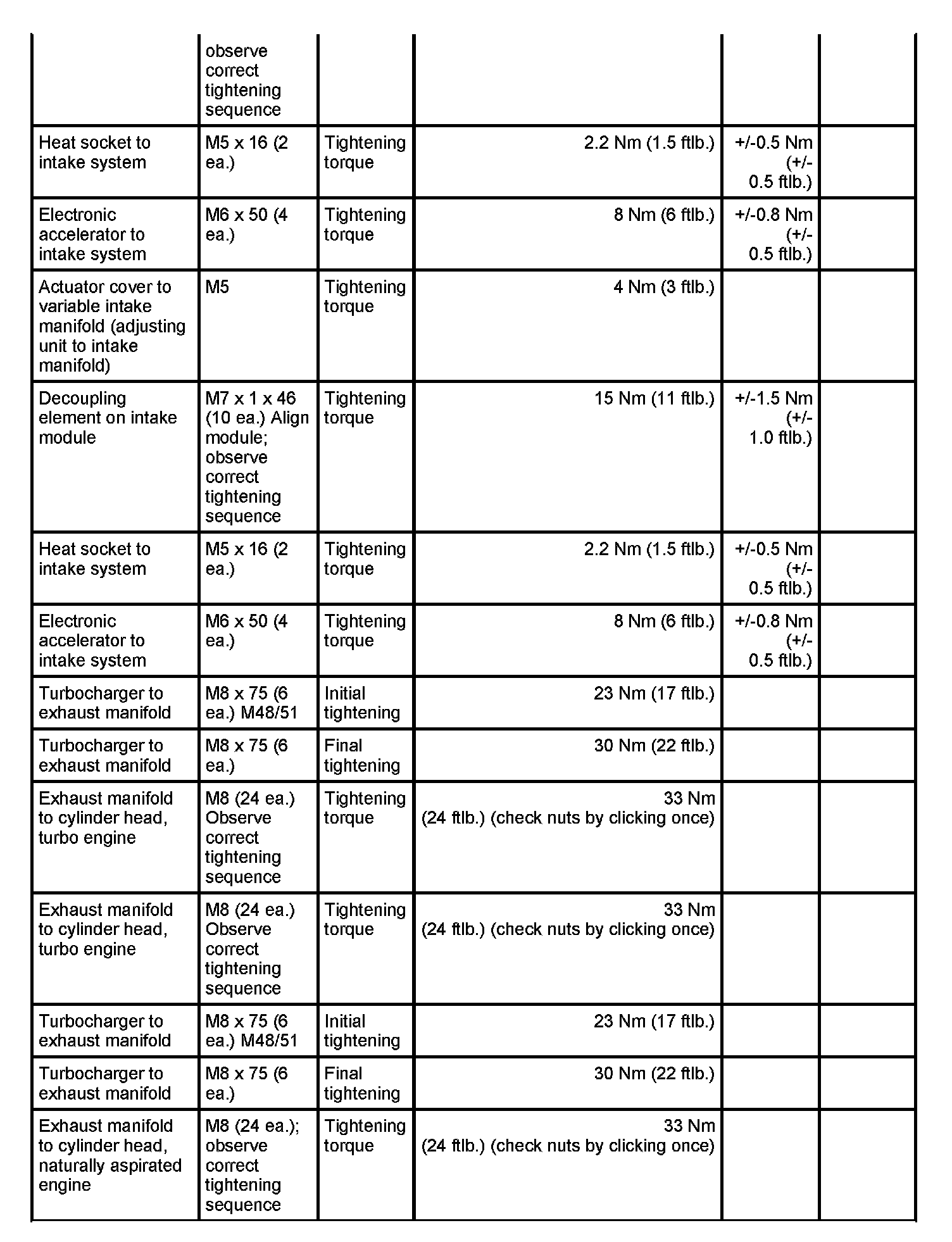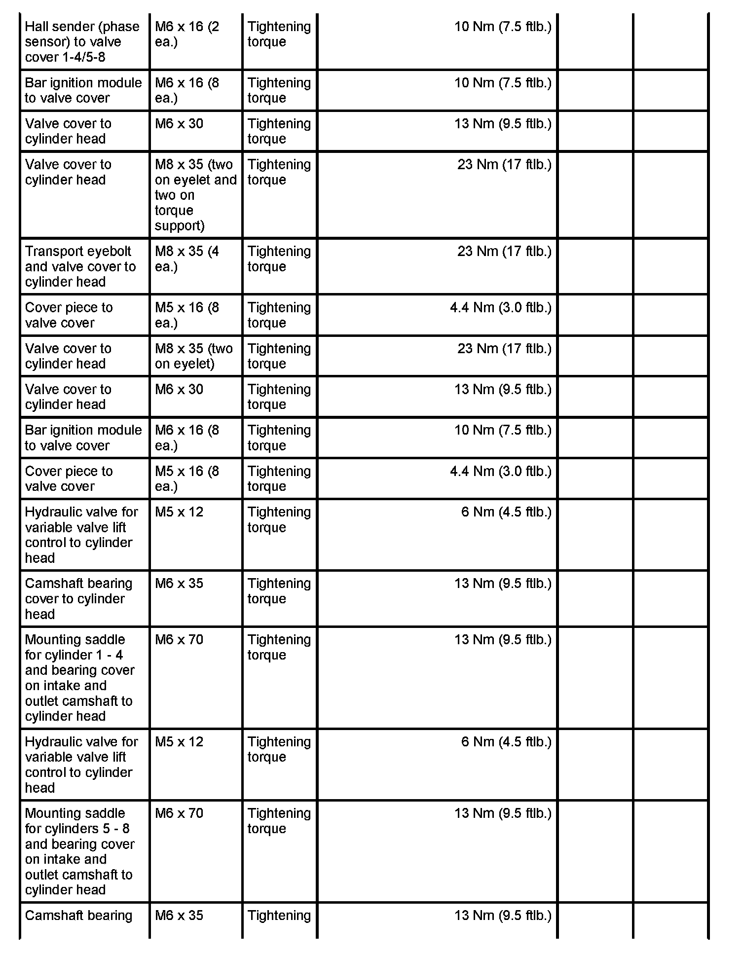 Tightening torques, tightening sequences, assembly overviews for V8 4.8 l DFI naturally aspirated and turbo engine up to October 2008