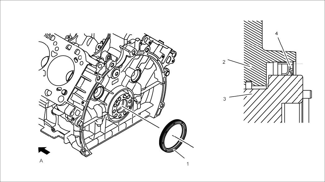 1 - Joint flange (oil sealing lip with engine oil); align with sleeve or vibration balancer