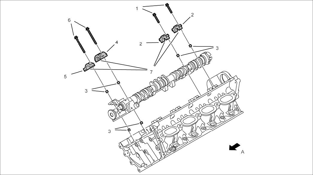 7 - Matching number for cylinder head/outlet camshaft bearing cover, cylinder 3 (A3)