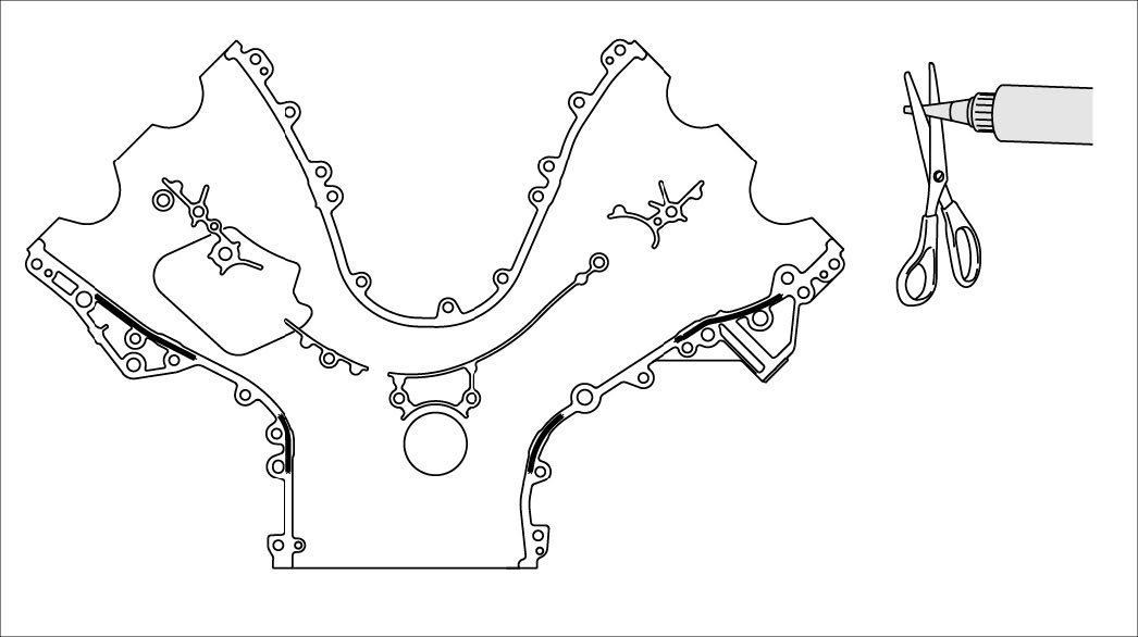 6 - Applying sealant to timing chain housing; Loctite 5900 (000.043.204.35 status 04/07)