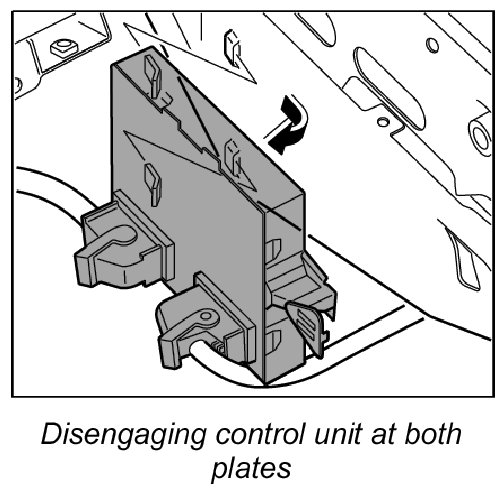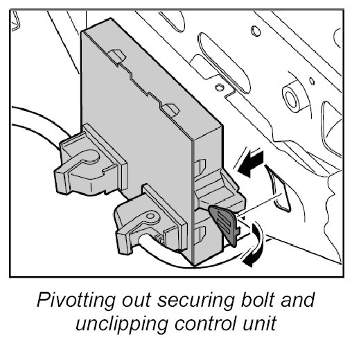 - Before removing the control module, switch off the ignition and remove the ignition key.