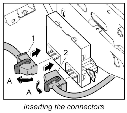 3. Clip in control unit on the support for the steering wiring and engage the locking mechanism for the lock.