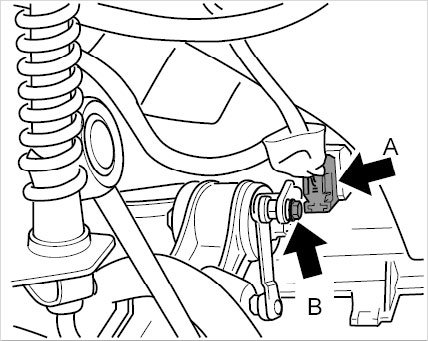 1. Pull connector -A- from sensor for HBA and loosen threaded joint -B- on control lever.
