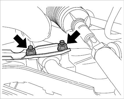 3. Loosen anti-roll-bar mount -arrows- and allow anti-roll bar to hang.