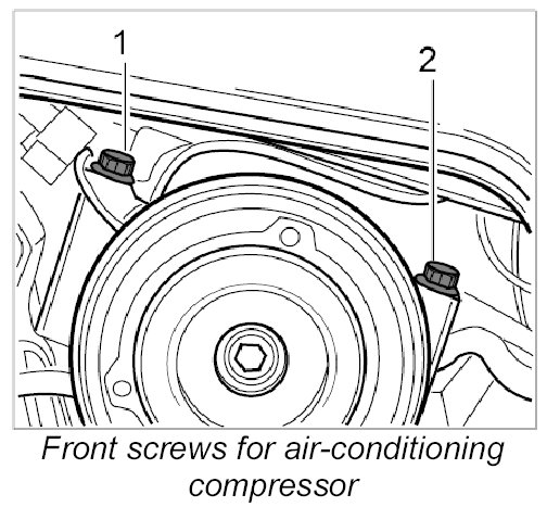 4. Unscrew front Torx screws for air-conditioning compressor (M8 x 90) -1- and -2-.