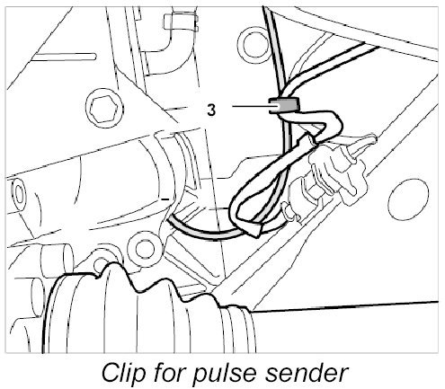 The pulse sender is located on the transmission bell housing to the right and can be accessed on the engine from underneath.