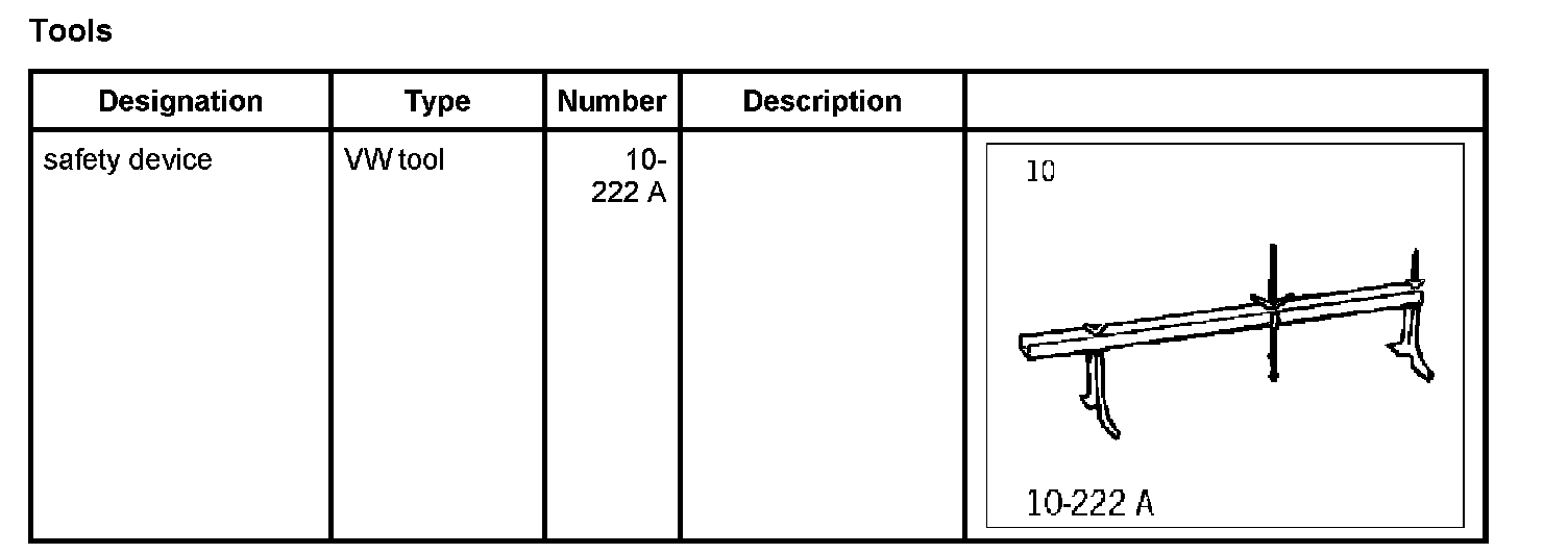 2. Fix the engine in the installation position using safety device 10-222 A at the engine lifting bracket.