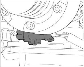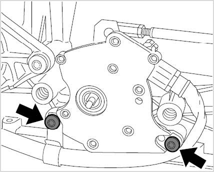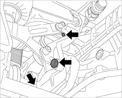 5. Screw in fastening screws between the body and the hydraulic mount -arrows-.