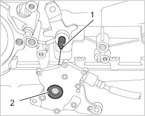 1. Connect multi-functional switch to the selector shaft. The flattened area of the switch splines -1- must be covered with the flattened side of the selector shaft splines. -2-.