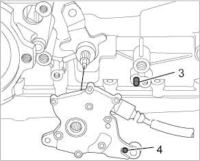 2. Connect multi-functional switch to transmission housing. To do this, turn the multi-functional switch until the dowel pin -3- on the transmission housing is covered by the fitted bore -4- on the housing of the multi-functional switch.