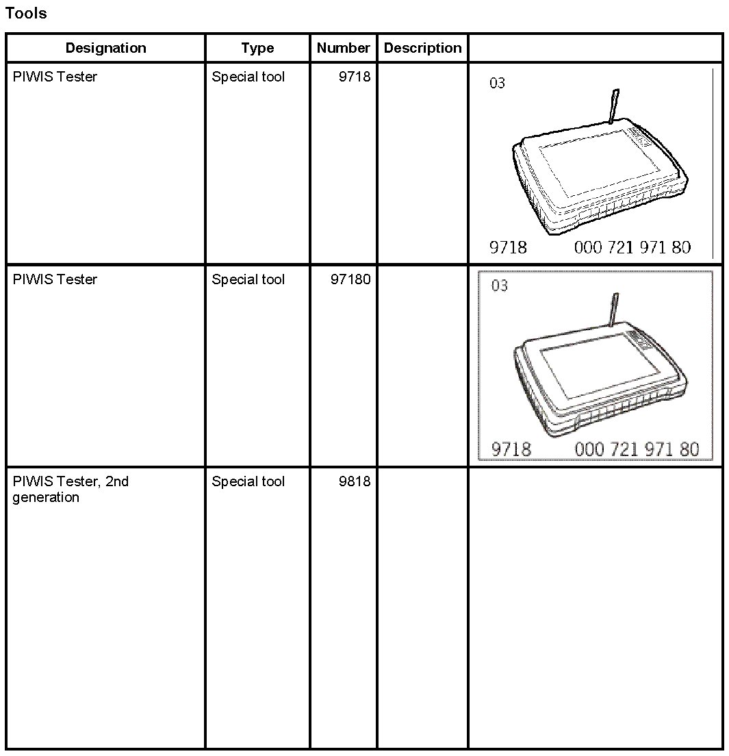 - Carry out tests only with the PIWIS Tester, 2nd generation 9818 diagnostic module; do not use test lamps, voltmeters or ohmmeters.