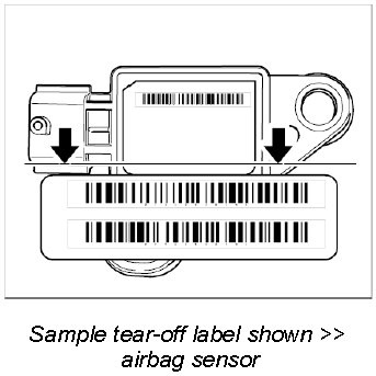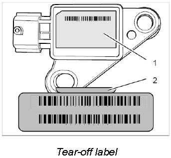 INFORMATION: If a new component (e.g. sensor, airbag control unit, airbag unit) of the airbag system has to be installed, the new component will be supplied with a barcode sticker (tear-off label).