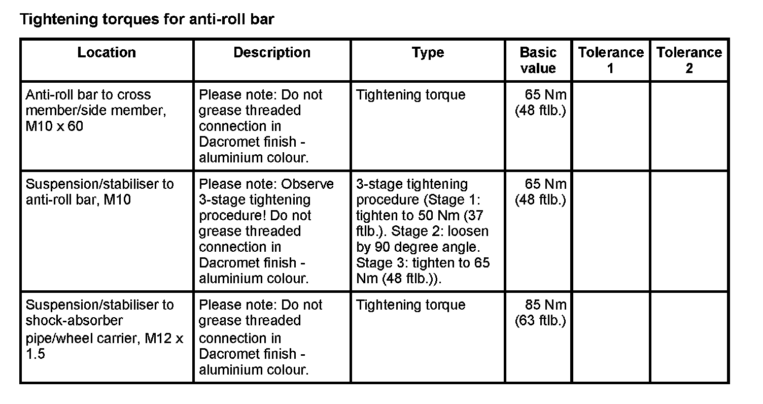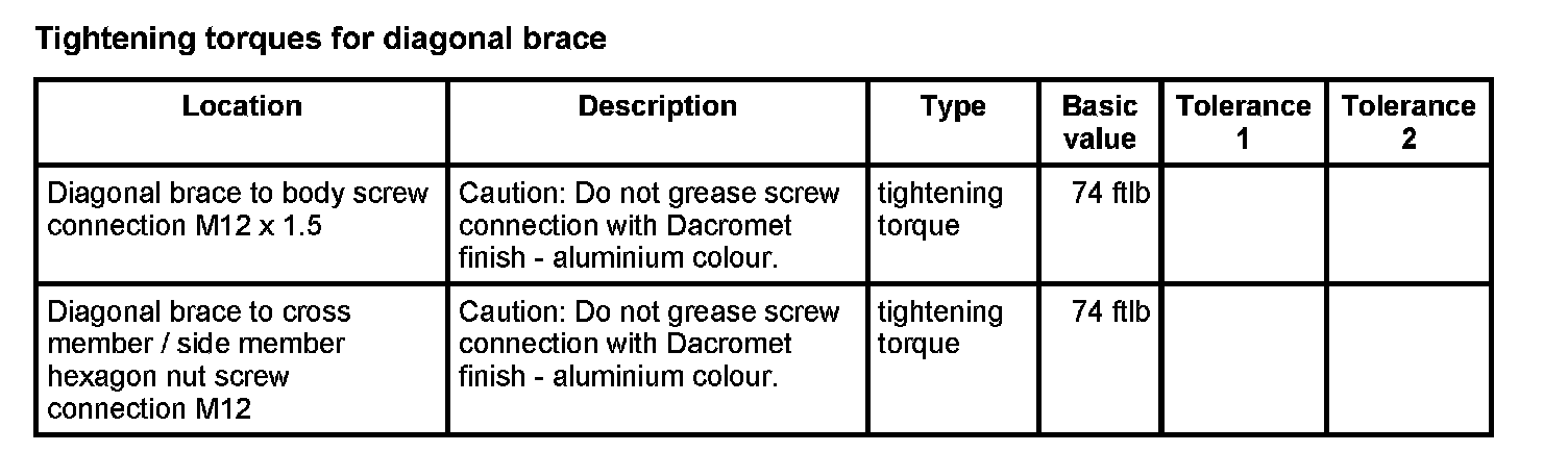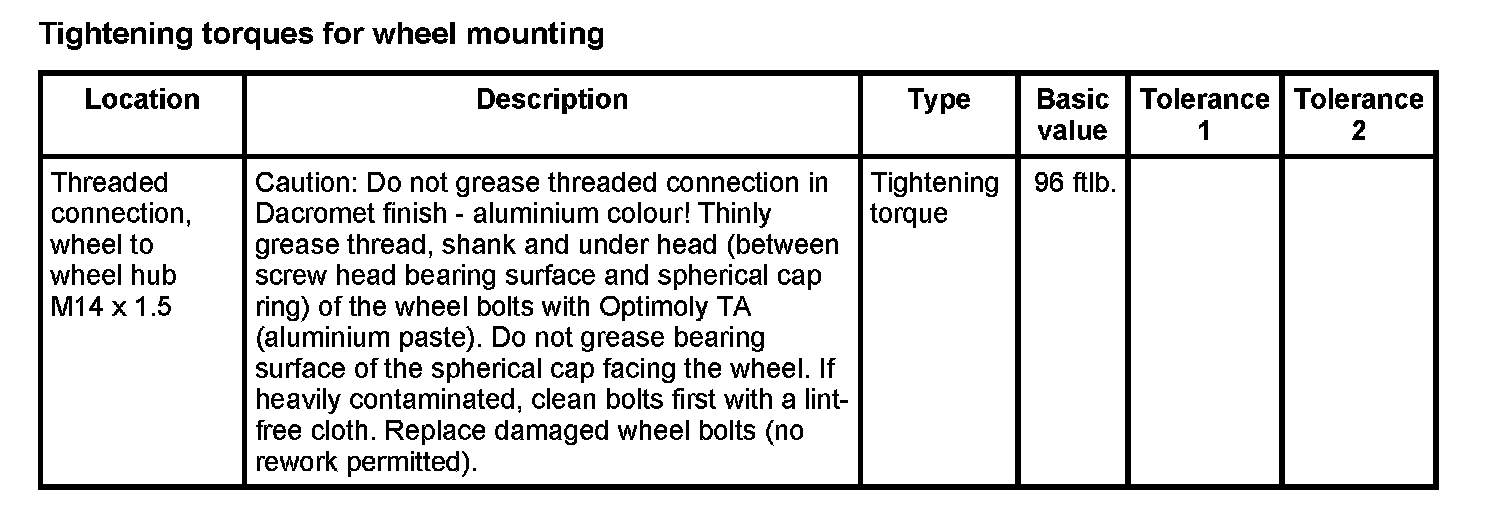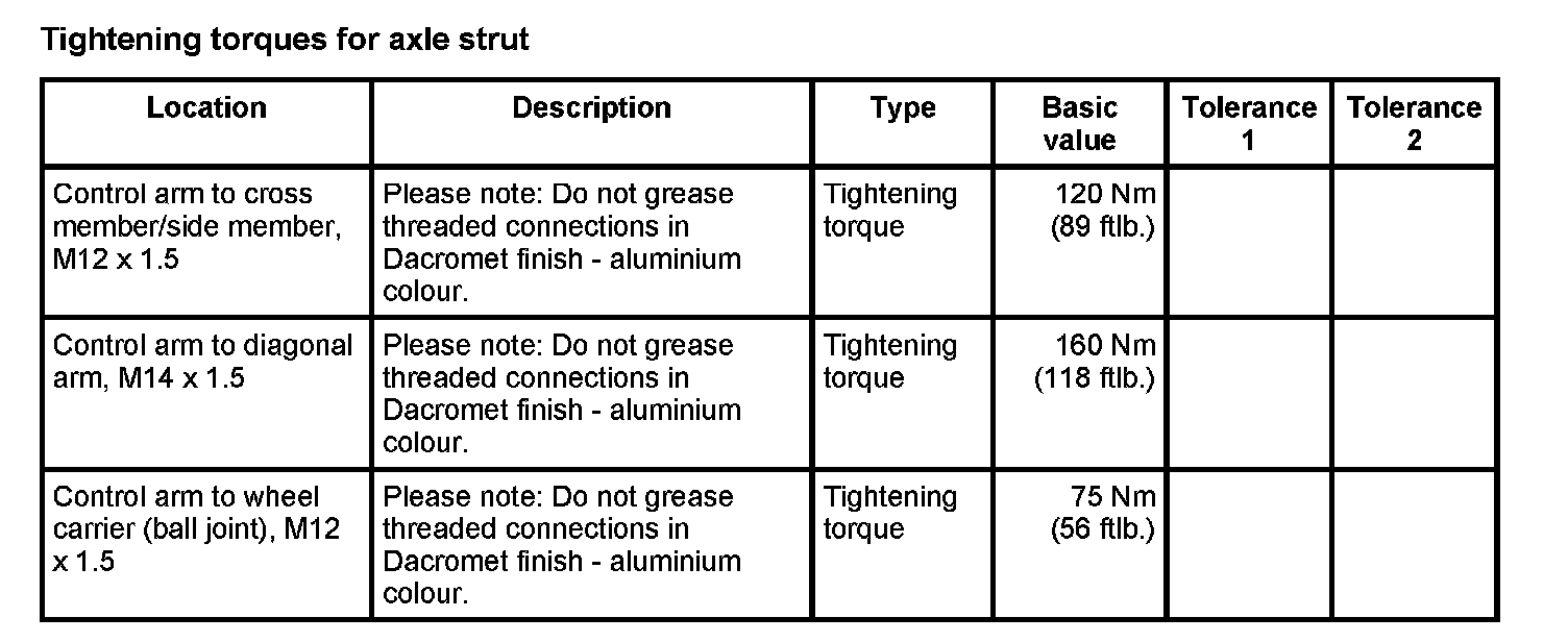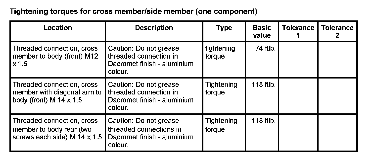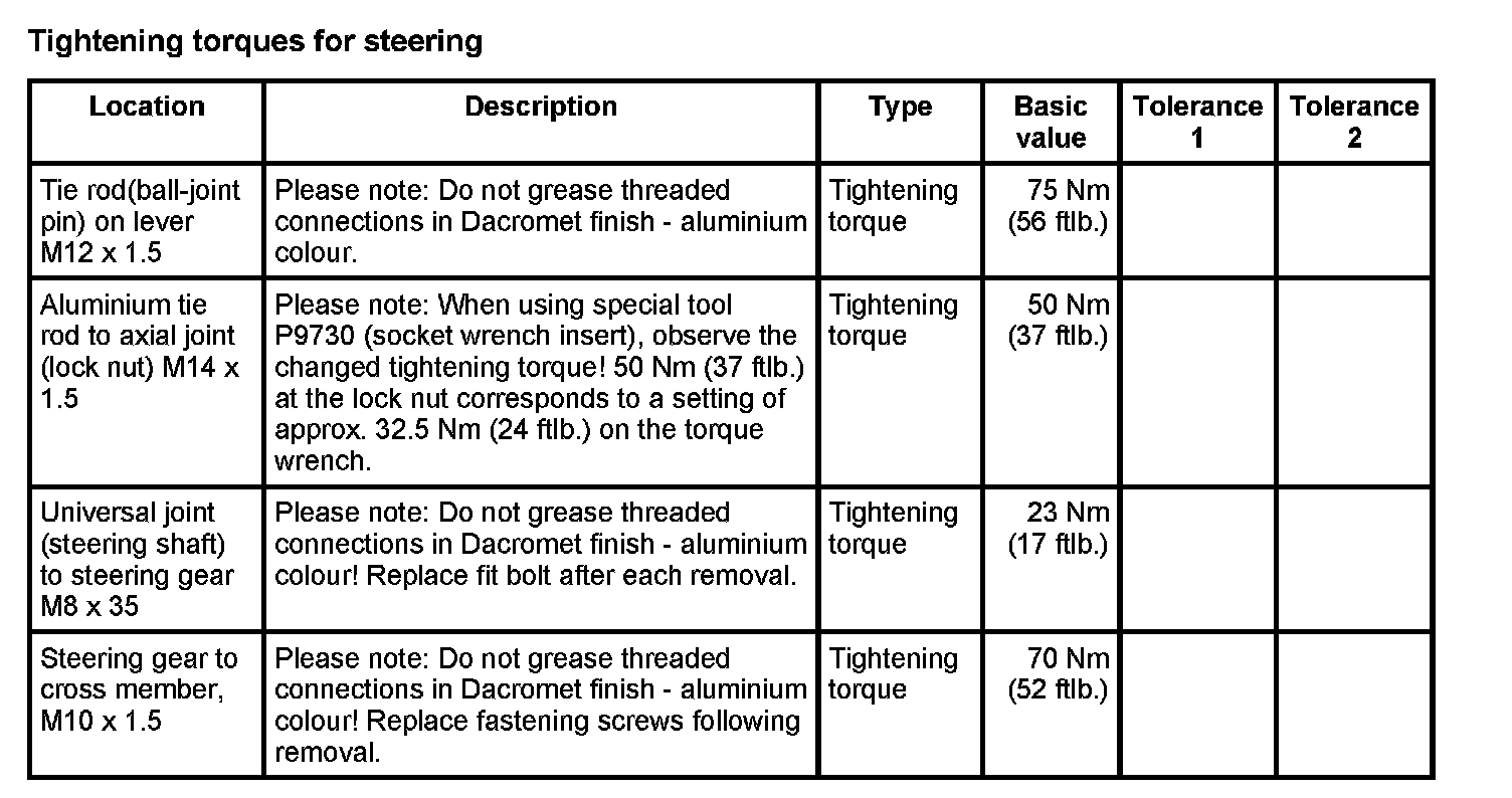 WM 400000 Tightening torques for front axle
