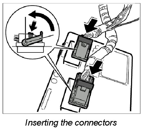 1. Press electrical plugs into control unit and lock them -arrow- so they are felt to engage.