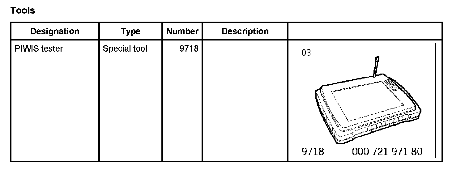The procedure described here has been structured in general terms; different text or additions may appear in the PIWIS Tester 9718.