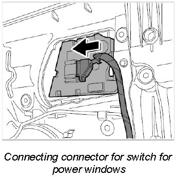 1. Insert the switch for power windows into the mounting points at the door trim panel using the locking tabs.