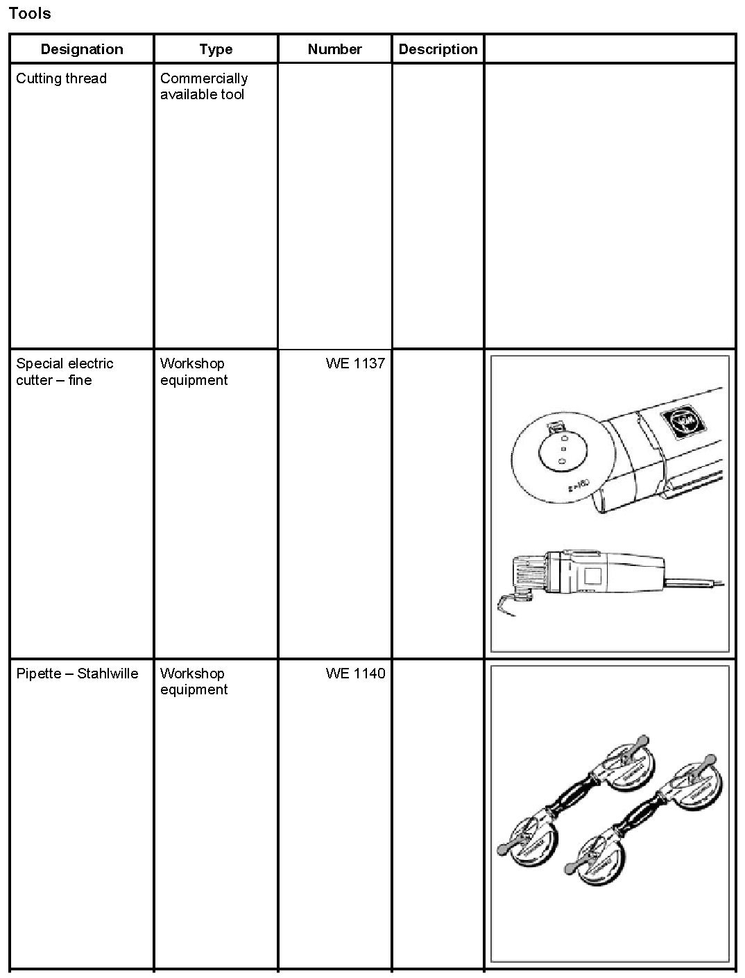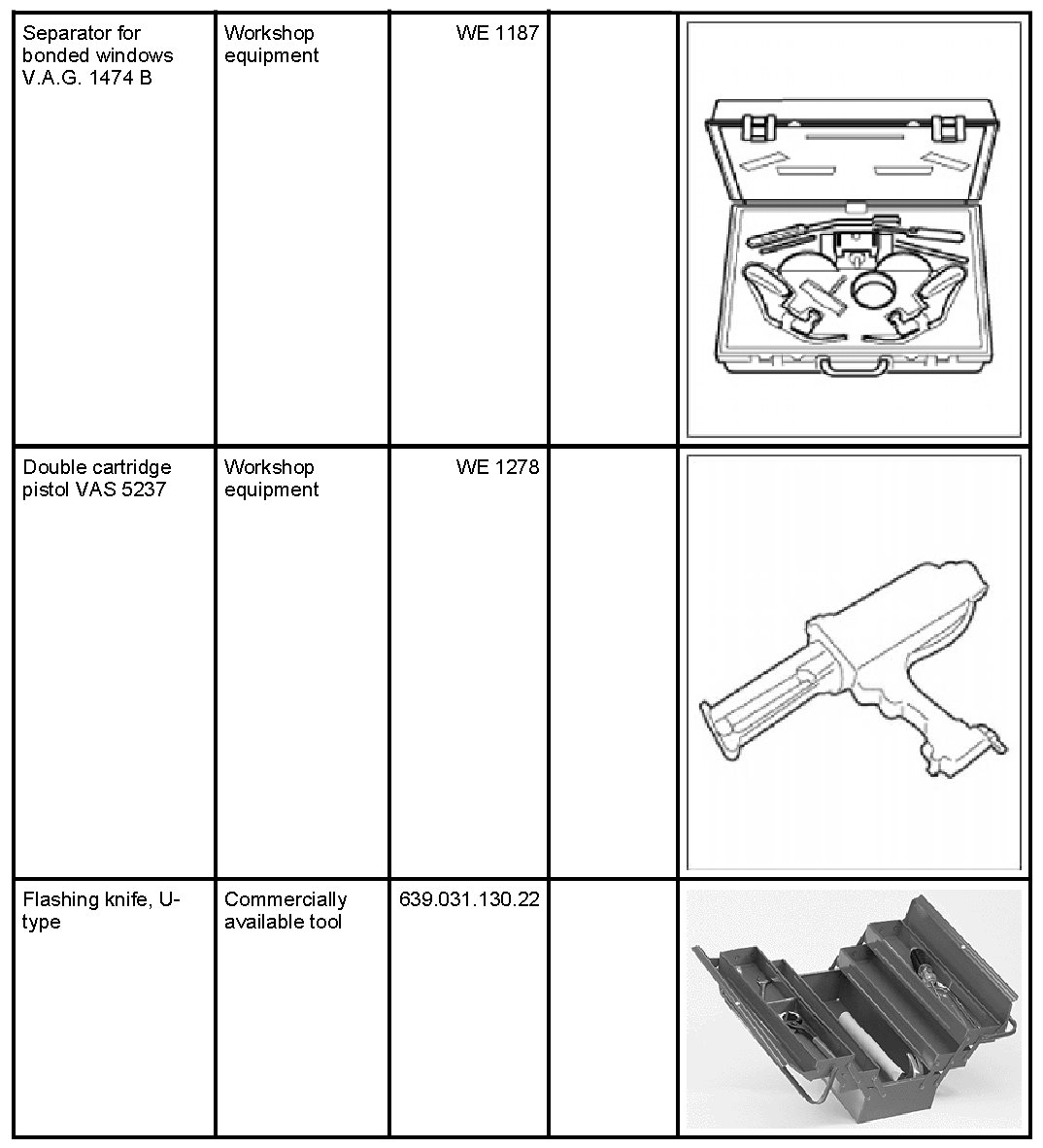 The following tools and materials are required for removing and installing the windscreen with 2-component adhesive: