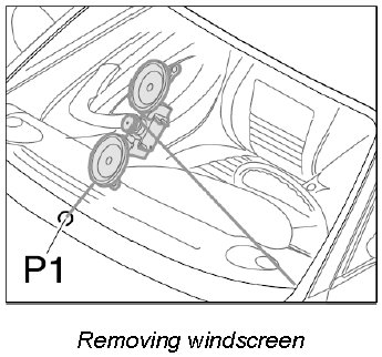 2. Remove windscreen with the cutting wire separator. Refer to General information on installing and removing car windows.