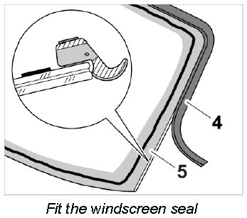 1. Stick seal -4- to the windscreen -5- from one edge along the entire border.