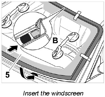 1. Guide the windscreen -5- into the window aperture and insert in the pre-marked positions.