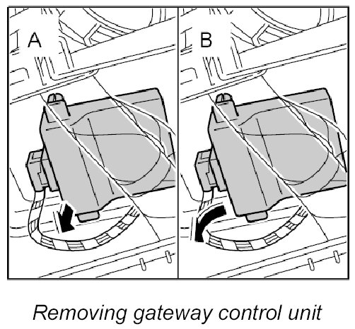 6. Release electric connector -A- and pull it off the gateway control unit.