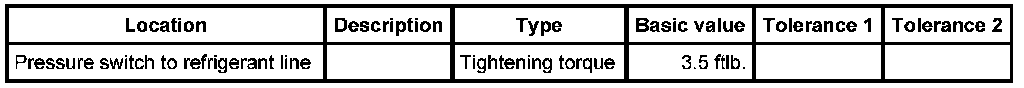 1. Screw pressure switch onto refrigerant line and tighten with an open-ended wrench. Counter with a second open-ended wrench. - Tightening torque: 3.5 ftlb.