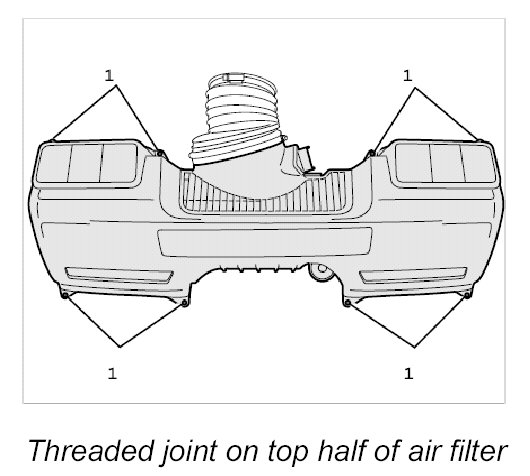 1.1 Screw in eight Torx tapping screws (T25 screw insert) on the upper part of the air filter and tighten carefully.
