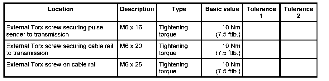 - Tightening torque: 10 Nm (7.5 ftlb.)