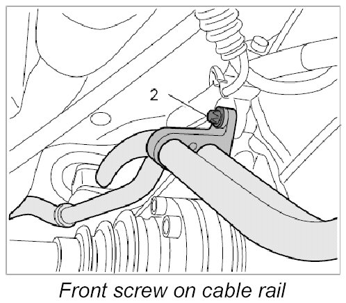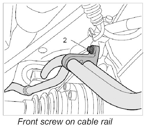 2.2. Screw in and tighten front external Torx screw (M6 x 25) -2- on the cable rail.