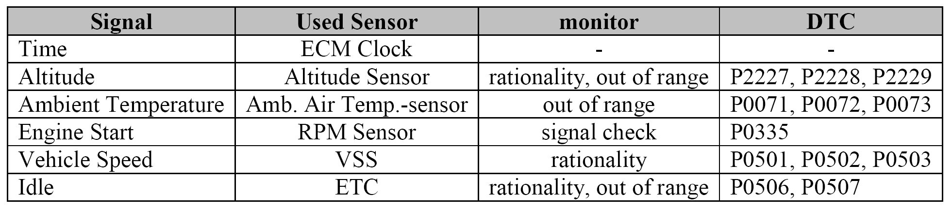 (Each sensor for this purpose is monitored either as out of range, signal or rationality check)