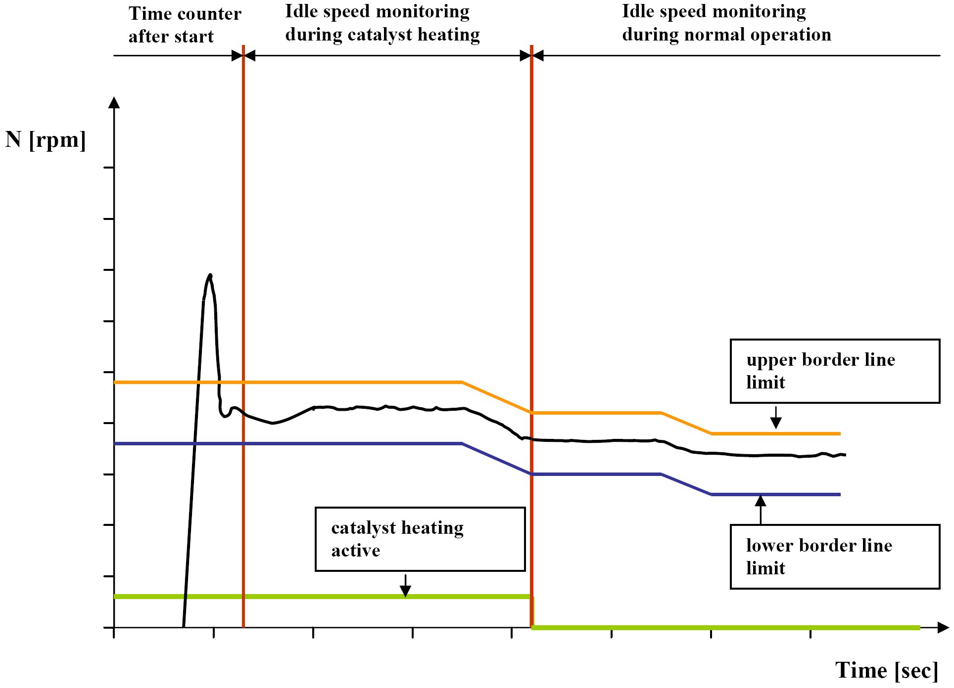 The following chart shows the working principle of the idle speed monitoring:
