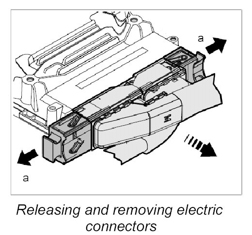 - Prior to disconnecting the control unit, switch off the ignition and remove the ignition key.