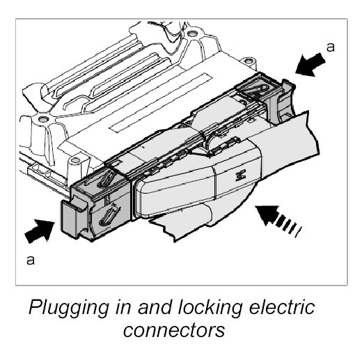 6. Release the two electric connectors -a- and pull them off the DFI control unit.