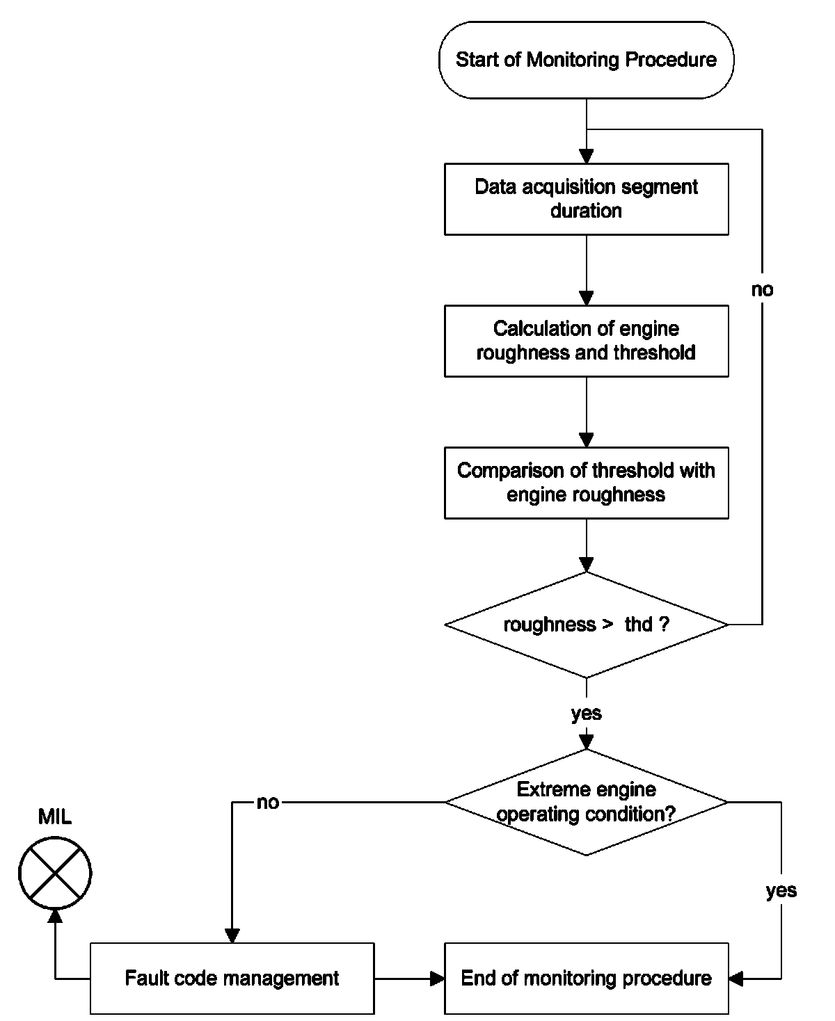Misfire detection is performed by comparing, the engine roughness threshold value with the engine roughness value. If the threshold is exceeded, single misfire is detected.